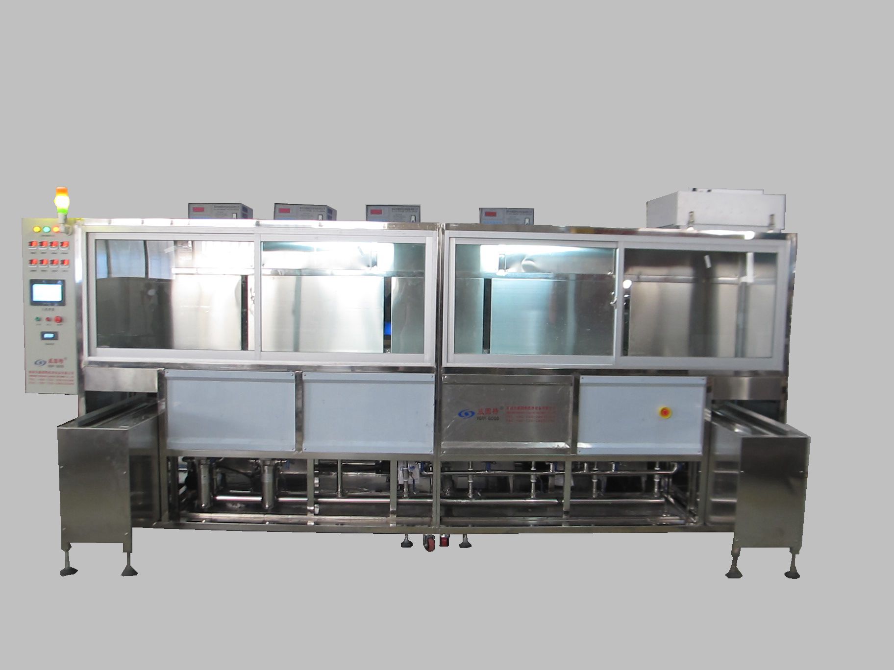 VGT-809FHA硫化鋅鏡片光學(xué)超聲波清洗機(jī)VGT-809FHA硫化鋅鏡片光學(xué)超聲波清洗機(jī)主要由超聲波發(fā)生器、超聲波振板、洗劑超聲槽、市水超聲槽、純水超聲槽、儲(chǔ)液槽、循環(huán)過(guò)濾系統(tǒng)、自動(dòng)恒溫加熱系統(tǒng)、拋動(dòng)裝置、機(jī)架、高位水箱、電器控制系統(tǒng)等組成。